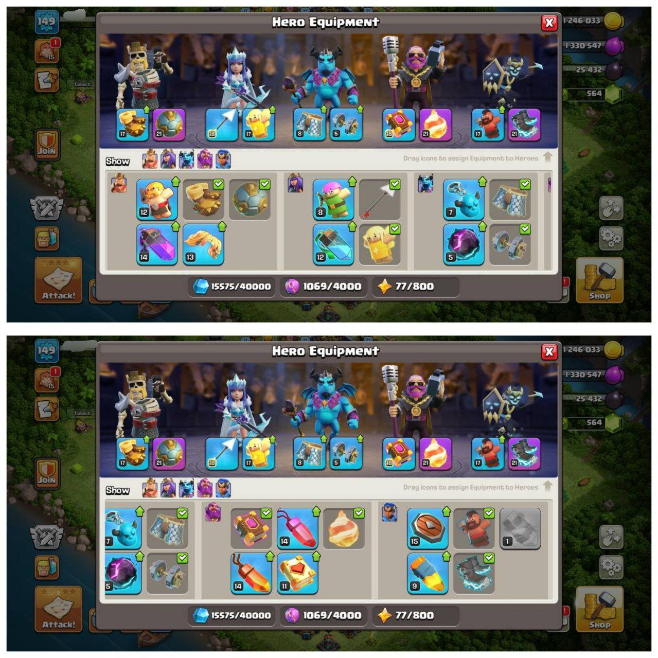{70% DISCOUNT} TH14 SEMI MAX ID⚡️3 EPIC EQUIPMENT⚡️XP-149⚡️HERO 60-60-29-47-27⚡️500 GEMS NAME CHANGE