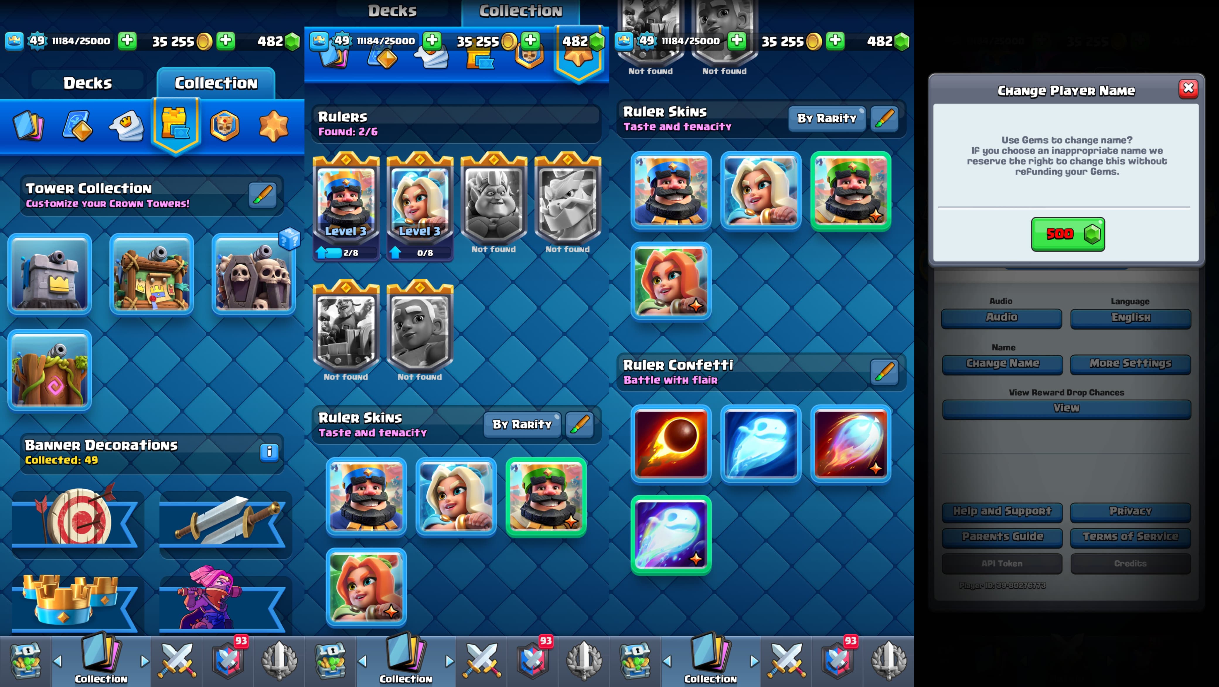 CR ID 🔥 49 Level 🔥 Arena 25 🔥 10k Trophy 🔥 Good Emote 🔥 482 Gems 🔥 Coin 35k 🔥 3x T. Skin 🔥 All Card Available 🔥 Good Collection 🔥 Fast Delivery 🔥 NC500 🔥 Cr1