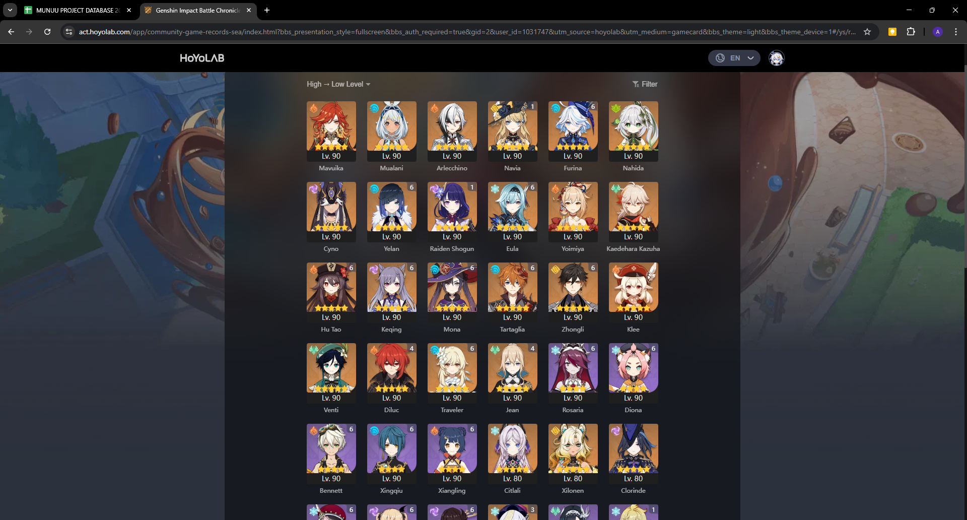AR60 92 Five Star Chara 47 Five Star Weapon 8xC6 Furina Yelan Hu Tao Zhongli Chi