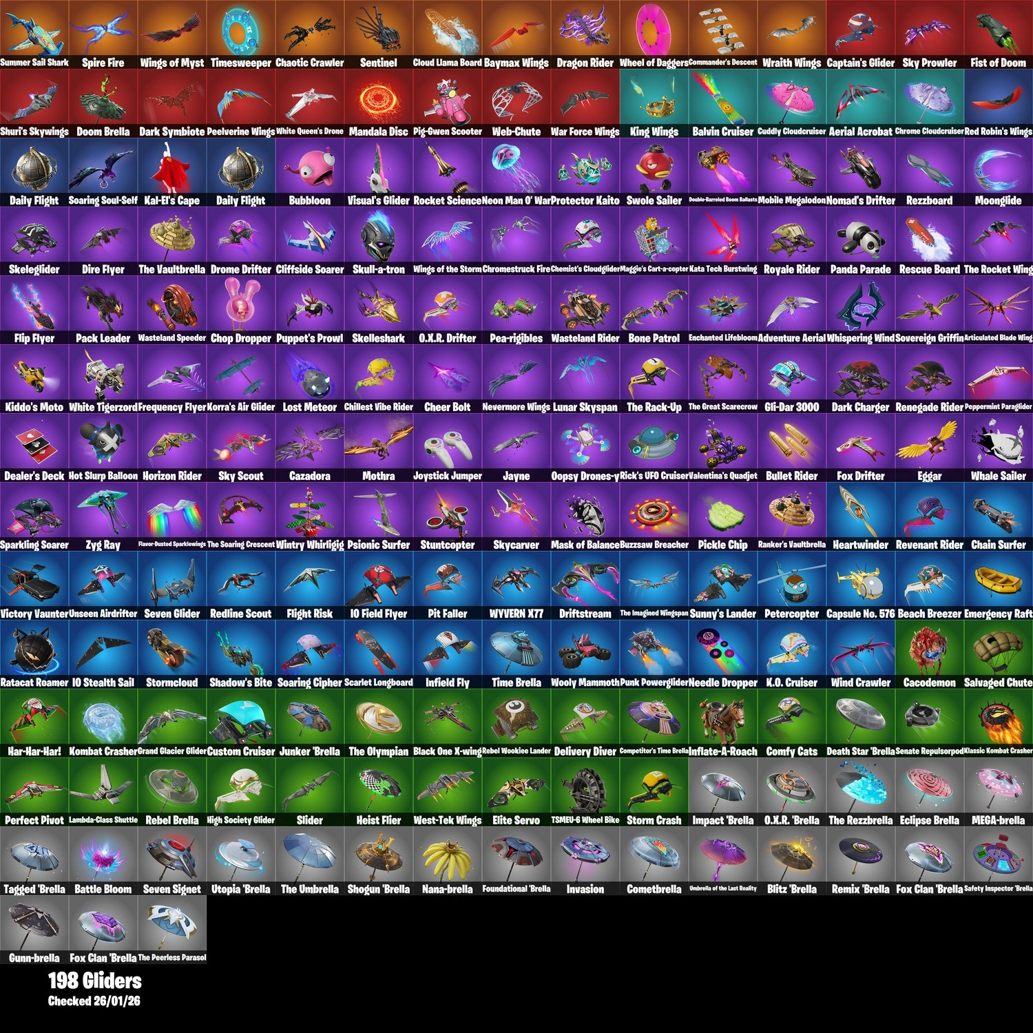 Ratacat Tsukamoto Bear M.O.A.B.B. Ignition Pack Galactic Pack IO Orchestrator Ritual Longhorn Sprynge-field Witch Cape Pterodactyl Coin Lil Quill 999 Knives Real Tekk Pack Lil' Dilly Dino Deck Dromerunner's Trophy Bright Bag Crimson Crest O.X.R. Rank…