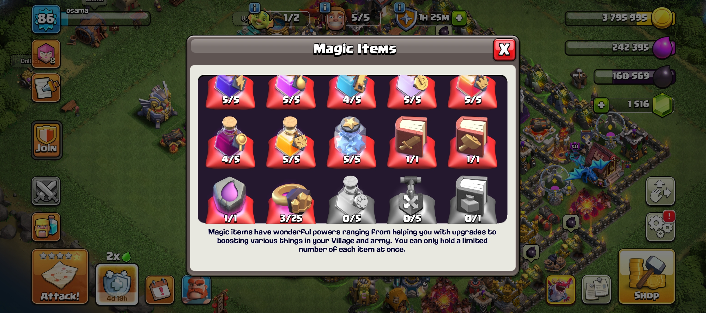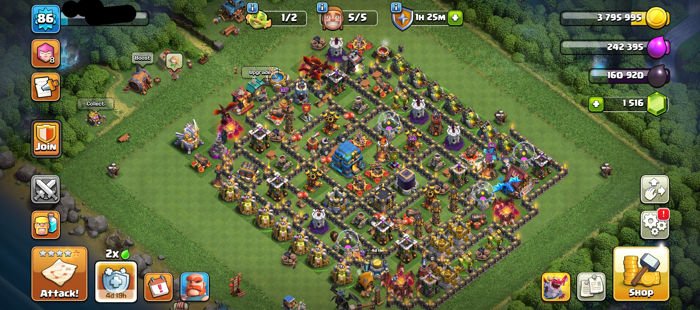 The account comes with Clash of Clans Town Hall 12 and 1500 gems