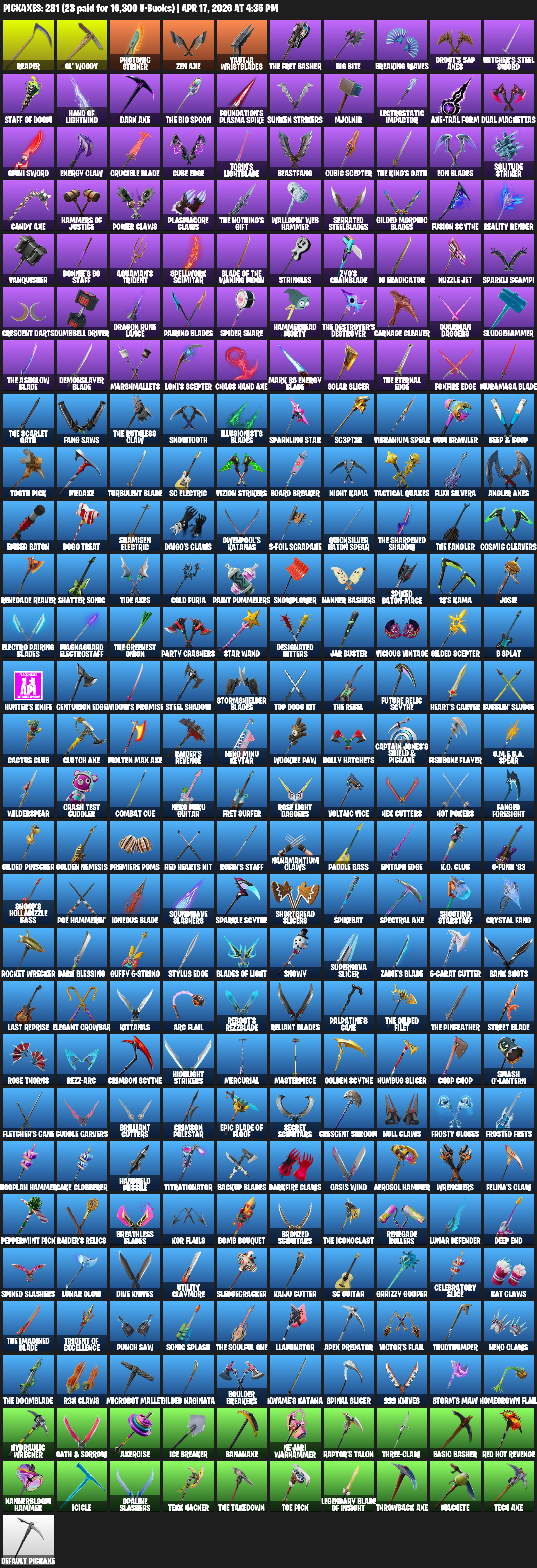 Premium OG Fortnite account – extremely rare and high-value. [Ultra Rare Highlights] Renegade Raider (Season 1 OG) Raider’s Revenge Pickaxe (one of the rarest in the game) Massive locker with 250 skins total [Collabs & Popular Skins] Marvel / DC …
