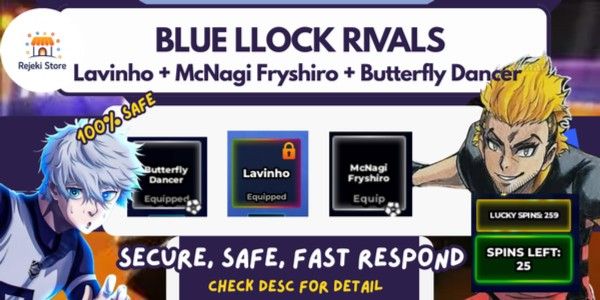 We believe in providing value to our community. That's why you'll find some of the cheapest Blue Lock Rivals accountson the market right here. Compare prices, check seller reputation, and snag a great deal today without compromising on security.